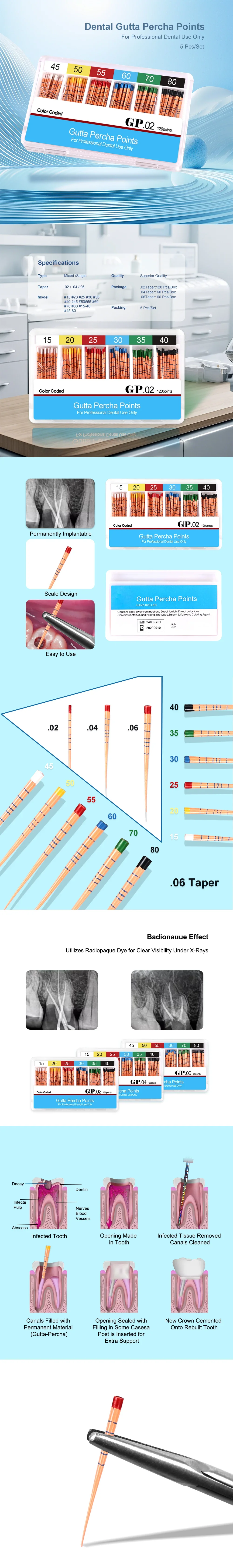 5Boxes Dental Gutta Percha Points with Scale Taper 02/04/06Taper Endo Root Canal Obturating Tips Depth Mm Marked Bars Materials