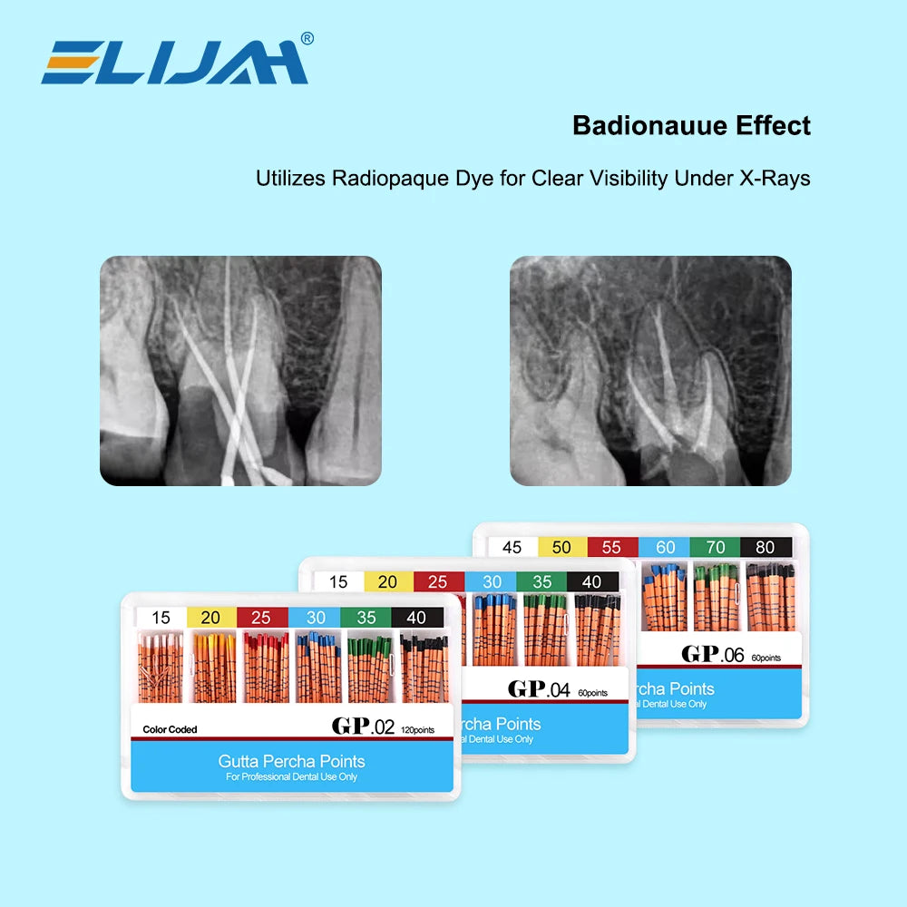 3.Contains: Guttta Percha,Zinc Oxide,Barium Sulfate,Coloring Agent.